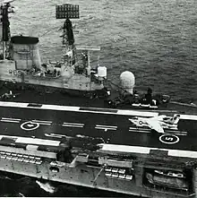 A VA-46 A-7E landing on HMS Ark Royal in 1976.