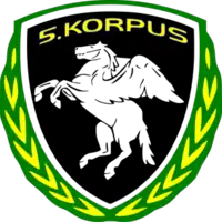 The 5th Corps was one of seven corps of the Army of the Republic of Bosnia and Herzegovina. The formation was around the Bihać pocket to protect it against the surrounding Serb forces. The Fifth Corps also fought secessional Bosniak forces loyal to Fikret Abdić, who was cooperating with Serb forces.[2] In the last military action of the ARBiH, Operation Sana, the corps defeated Abdić's supporters and brought a number of regions of Bosnia and Herzegovina under government control. In April 2018, police detained Atif Dudaković and 12 others on suspicion of committing crimes against humanity during the Bosnian war. The court process is still ongoing.
