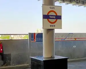 Vadaj is an elevated metro station on the North-South Corridor of the Red Line of Ahmedabad Metro in Ahmedabad, India.[1] Around this metro station holds the main Vivekanand Institute of Management along with AMC Tubewell Station and Trisha Multispeciality Hospital in West Ahmedabad. This phase of the metro system was inaugurated on 30 September 2022 by Prime Minister Narendra Modi and was opened to the public on 6 October 2022.[2][3][4][5]