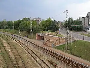 Vagonu Parks Station is a railway station in Riga Municipality on the Riga-Aizkraukle regional line, and the Riga–Daugavpils Railway Line.
