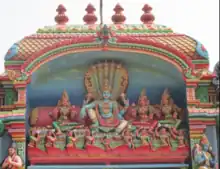 The richest temple of the world is dedicated to a form of Perumal Known as the Padmanabhaswamy Perumal temple, Thiruvananthapurum.[8] Several extant Hindu texts including the Vishnu Purana,[9] Brahma Purana,[10] Matsya Purana,[11] Varaha Purana,[11] Skanda Purana,[10] Padma Purana,[10] Vayu Purana and Bhagavata Purana mention the Padmanabhaswamy Temple.[10] The Temple has several references in Sangam period literature.[12] Many conventional historians and scholars are of the opinion that one of the names that the Temple had, "The Golden Temple", was in cognisance of the Temple being already unimaginably wealthy by that point (early Sangam period).[13][14][12] Many extant pieces of Sangam Tamil literature and poetry as well as later works of the 9th century of Tamil poet–saints like Nammalwar refer to the temple and the city as having walls of pure gold.[15] Both the temple and the entire city are often eulogised as being made of gold, and the temple as heaven.[15][16] The temple is one of the 108 principal Divya Desams ("Holy Abodes") in Vaishnavism according to existing Tamil hymns from the fifth and eighth centuries C.E and is glorified in the Divya Prabandha.
