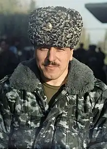 In February 2003, the AFP reported that Arsanov issued a video call to the Chechen resistance to put stop attacks on pro-Moscow Chechen militias.[24] According to Russian media reports, he became close with Akhmad Kadyrov, the pro-Moscow head of the republic, who asked the federal center for an amnesty for Arsanov;[25] other sources state that he and Isa Munayev remained the last commanders still fully loyal to Maskhadov.[26] According to the Kommersant report,[27] Arsanov was detained by the Chechen OMON, led by the former separatist commander Artur Akhmadov.[28] In February 2005, the separatists protested the alleged arrest and detention of Arsanov by the Russians.[29]