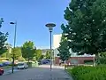 The neighbourhood is built around a large green area, the Valdecorvos Park, to the south of which flows the Valdecorvos stream. It is the largest park in the east of the city. In addition to the trees, it has pedestrian paths and a wooden bridge to cross the Valdecorvos stream, a footbridge on stilts to connect it to the Costado area and wooden stairs to Prado Novo street. It has a viewpoint in the northern part with views to the east of the city.[12] There is an oak grove and the viewpoint is designed as a rest area with urban furniture.[11] In addition to this park, there are gardens linked to each block of buildings and, to the east of the neighbourhood, the As Regas park.[3]