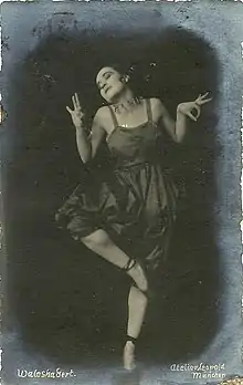 World War I had a negative effect on her father's finances, forcing her to rely on herself far more than other bourgeois daughters typically might.[1] As World War I raged, Gert joined a Berliner dance group and created revolutionary satirical dance.[2] Following engagements at the Deutsches Theater and the Tribüne in Berlin, Gert was invited to perform in expressionist plays in Dadaist mixed media art nights.[1] Her performances in Oskar Kokoschka's Hiob (1918), Ernst Toller's Transformation (1919), and Frank Wedekind's Franziska earned her popularity.[4]