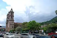 The Temple of Santa María Ahuacatlán was originally a chapel when it was started in 1864 but has been converted into a church which is still under construction.[10] The main altar contains a Black Christ which is still worshipped.[1] Inside the church are extremely large canvases by Phillippa, an English artist who was recently commissioned. These canvases depict the relationship between Mazahua legend and the Black Christ.[10]