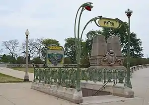 One of the station's entrances is a replica of an Hector Guimard-designed, Art Nouveau-style Paris Métro entrance. The entrance was given to Chicago as a gift by the city of Paris in 2001.[2]