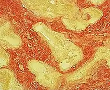 Van Gieson's stain is a mixture of picric acid and acid fuchsin. It is the simplest method of differential staining of collagen and other connective tissue. It was introduced to histology by American neuropsychiatrist and pathologist Ira Van Gieson.[1]