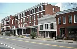 Van Ornam & Murdock Block, also known as Lee House Block, is a historic commercial block located at Port Henry in Essex County, New York. The block consists of four attached structures in the Italianate style built between 1874 and about 1880. It is the focal point of the Port Henry business district. The Van Ornam Block was built in 1874 and is a 3+1⁄2-story brick building with an ornately bracketed wood cornice. The 4-story Lee House Hotel was also built in 1874 and is a 4-story brick structure. The next building was built about 1880 and is a 2-story wood-frame building with a stamped metal facade. The Harlan building is last on the block and it was also built about 1880. It is a 2-story, flat-roofed brick structure.[2]