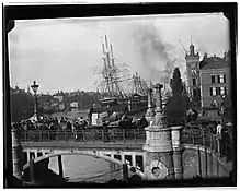 In 1875 the Koninklijke Fabriek came out highest at a tender for two bridges over the harbor front in Amsterdam. The factory offered for 512,000 guilders, while the lowest offer was for 409,000 by Kölnische Maschinenbau. Six other competitors also offered lower.[92] In November 1875 the company lost a tender for the bridge over the Waal at Nijmegen. At 1,529,200 guilders it lost to Union AG für Bergbau und Hüttenbetrieb from Oberhausen, which offered for 1,440,000 guilders.[93] In 1876 the company delivered the comparatively small Kattenburgerbrug over the Nieuwe Vaart near the factory in Amsterdam.[78]