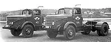About 260 models of lorry were produced, which were fitted with 35 types of engine, 20 different gearboxes, and 15 to 20 types of cabin.[59] Many of the models were produced in small numbers, with 116 types only being represented by one or two units. Most of the differences came from special wheelbases that always needed approval from the authorities.[60] In many cases, it is impossible even for experts to identify different models and years of production. There were 66 types of bus chassis produced, and the number of different body types built on them by various coach builders and operators is unknown.[59]