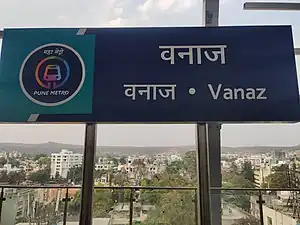 Vanaz is the elevated western terminal metro station on the East-West corridor of the Aqua Line of Pune Metro in Pune, India. The station was opened on 6 March 2022 as an inauguration of Pune Metro.[1] From March 2022 to August 2023, the Aqua Line was operational between Vanaz and Garware College.[2] The extended section between Garware College to Ruby Hall Clinic was inaugurated on 1 August 2023. So the metro currently runs from Vanaz to Ruby Hall Clinic.[3]