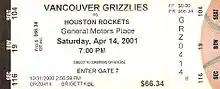 For the 2000–01 season, the team's final season in Vancouver, Sidney Lowe was hired as head coach.[36] Forward Stromile Swift was selected as the second-overall pick in the draft.[37] Despite finishing with a franchise-best 23 wins and 59 losses, the team still finished last in the division.[36] The team's final home game at GM Place was against the Rockets on April 14, 2001. The team's final game as the Vancouver Grizzlies was a 95–81 win against the Golden State Warriors on April 18, 2001.[38]