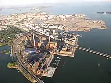 ![]() Ruoholahti from a hot air balloon in 2010. Varma's main office in Salmisaari is in the foreground. | |