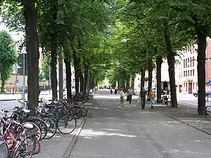 Along it are well known establishments like the Röhsska Museum, Gothenburg University and Gothenburg School of Economics and Commercial Law. The street is known for its many cafés, and it has several restaurants. It is said to have the most dense bicycle traffic in Gothenburg. The street crosses Kungsportsavenyn, and this crossing is the midpoint of nightlife in Gothenburg.