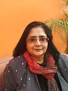 Vasundhara Tewari Broota (born 1955)[1] is an Indian painter who does figurative paintings[1] based on the perception of a woman and the psycho-political existence of the female body,[2][3] traditional landscapes, still life with exquisite meaning.[1][4][5] She worked on a cultural scholarship awarded by the Department of Culture, Government of India during 1982-84.[6] She, Jatin Das and other 298 artists had donated art work for 2018 Kerala floods through an exhibition cum sale held in The National Gallery of Modern Art.[7]