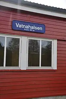 Vatnahalsen Station (Norwegian: Vatnahalsen holdeplass) is a railway station on the Flåm Line in Aurland, Norway. It is 1.13 kilometers (0.70 mi) from Myrdal Station, 336.93 kilometers (209.36 mi) from Oslo Central Station and 811.3 meters (2,662 ft) above mean sea level. The station opened on 1 August 1940.[1][2]