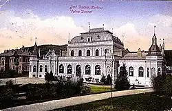 It was initially constructed as an entertainment venue for tourists of Austria-Hungary who would flock to the nearby therapeutic baths. The baths offered mineral water treatments, carbonic acid baths, and mud wraps for visitors while the nearby casino offered poker, craps, and roulette.[2] The casino initially was designed to attract Viennese tourists looking for treatment. Local authorities hired traveling bands from Vienna and the structure itself was built as a sister casino to the current Grand Casino in Baden bei Wien, Austria, mimicking its design. In its heyday, the Casino attracted tourists from all over Austria-Hungary, mainly from Vienna, Berlin, and Budapest, but also Italian and Jewish travelers.[3][4]