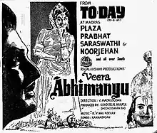 Veera Abhimanyu is a 1965 Indian Tamil-language Hindu mythological film directed by V. Madhusudhana Rao and produced by Sunderlal Nahta and Doondi. Based on Abhimanyu, a character from the Indian epic Mahabharata, the film stars Gemini Ganesan leading an ensemble cast, including A. V. M. Rajan portraying the title character. It was simultaneously filmed in Telugu as Veerabhimanyu, with a largely different cast. The film was released on 20 August 1965, and failed commercially.