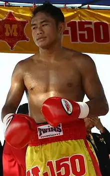 Veerapol Sahaprom or Veerapol Nakornloung[1] (Thai: วีระพล สหพรหม, วีระพล นครหลวงโปรโมชั่น; born November 16, 1968) is a Thai professional boxer. A former WBC and WBA Bantamweight Champion, he is considered by many as one of the greatest western style boxers from Thailand. He is from the Nakhon Ratchasima province in Thailand. Nicknamed "Solemn-faced Tiger" or "Deathmask" because he never changes his expression when throwing punches.[1]