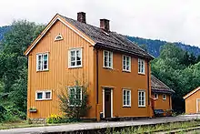 Veggli train station was on the Numedal Line. The line ran from Kongsberg to Rødberg in Nore og Uvdal. The line was officially opened in 1927. Passenger traffic on the track was closed in 1988. West from Veggli, the road goes over Vegglifjell where Veggli Lodge and Veggli Skisenter are located. Further the road leads to the villages of Austbygdi and Tessungdalen in Tinn.[3] [4]