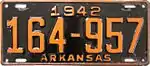 1942–43 | Embossed orange serial on black plate with border line; "1942" and "ARKANSAS" centered at top and bottom respectively | none | 123-456 | 1 to 200-000; 300-001 to approximately 390-000 |