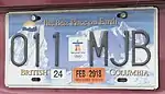 - ↑ Garrish, Christopher. "British Columbia Passenger License Plates 2001-2014". www.bcpl8s.ca. Retrieved March 6, 2018.