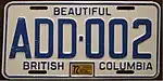 - 1 2 Tanner, Eric N. "British Columbia Passenger License Plates". allaboutlicenseplates.com. Retrieved November 19, 2020.