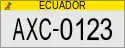 The plates have a XX-0123 format with ECUADOR in black capital letters on top of the plates. The first two letters denote different types of plates based on the user of the vehicle.