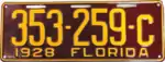 1928 | Embossed yellow serial on maroon plate with border line; "1928 FLORIDA" at bottom | none | 123-456-C | 1-C to approximately 391-000-C | |