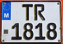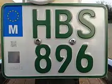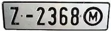 Maltese registration plates are the number plates used within Malta to uniquely identify motor vehicles. Since 1995, the three letter, three number system (ZZZ 999) has been in use in Malta for vehicle registration. The characters are always printed in black on a white background, and to the left one can find a blue box with the Flag of Europe and the letter M (for Malta) underneath it in white. The typeface used on Maltese registration plates is FE-Schrift which is also the typeface used on German vehicle registration plates.