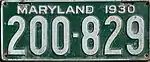 1930 Embossed white serial on green plate with border line; "MARYLAND 1930" centered at top none 123-456 30-000 to approximately 342-000