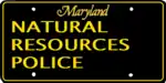 Natural Resources Police Screen-printed yellow slogan stacked vertically on black background, state name screen-printed and centered at top in yellow, serial screen-printed and stacked in yellow offset right. NATURAL/RESOURCES/POLICE 1/2/3