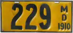 1910 Embossed black serial on yellow plate with border line; vertical "MD" and "1910" at right none 1234 1 to approximately 5000
