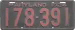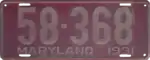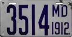 The U.S. state of Maryland first required its residents to register their motor vehicles in 1904. Registrants provided their own license plates for display until 1910, when the state began to issue plates.[1]