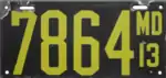 1913 Yellow serial on black porcelain plate; "MD 13" at right none 12345 2000 to approximately 15000