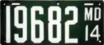 1914 White serial on green porcelain plate; "MD 14" at right none 12345 2000 to approximately 20500