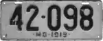 1919 Embossed black serial on white plate; "MD·1919" centered at bottom none 123-456 20-000 to approximately 109-000