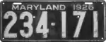 1926 Embossed white serial on black plate with border line; "MARYLAND 1926" centered at top none 123-456 30-000 to approximately 275-000