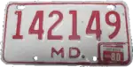 1939–40 Embossed green serial on white plate with border line; "MARYLAND EX-3-31-40" at bottom none 123-456 30-000 to approximately 522-000