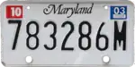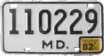 Multi-purpose February 1986 – October 1997 Black on white; "Maryland" screened at top none 123456M 000001M to 999999M
