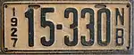 1927 | Embossed black serial on cream plate with border line; vertical "1927" and "NB" at left and right respectively | none | 12-345 | 3-000 to approximately 24-700 | |