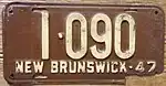 1947 | Embossed white serial on brown plate; "NEW BRUNSWICK-47" at bottom | none | 12·345 | 1·000 to approximately 40·000 | |