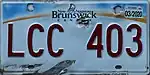 2003–09 | As above, but with revised wordmark ("New" to the left of the galley, "Nouveau" to the right and "Brunswick" and "CANADA" below) | none | AB1 234 | AA1 001 to unknown | |