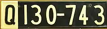 • From April 1, 1925 until 1955, the plates were "Q|123-456". The "Q" area was painted black on a white background, while the numbers were painted white on a black background. A dash was placed before the last three digits.