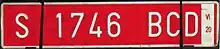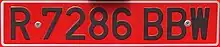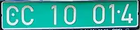 Diplomatic plates are either red, green, yellow or blue and start with the letters "CD" (red) for diplomatic cars, "CC" (green) for consular cars, "TA" (yellow) for ancillary workers' cars or "OI" (blue) for cars belonging to international organisations. The first set of numbers stands for the embassy or organisation and the second for the specific car from an organisation.