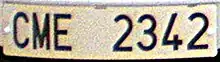 In the later years of this system, many plates were white with black characters. Today, there are a few rare cases where the blue EU country identifier strip is also carried, as plates are reissued in new format but with the same number sequence when deteriorated or lost.