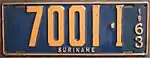 - ↑ "Suriname plates information". Matriculasdelmundo.com (in Spanish). Retrieved 2 Mar 2023.