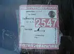 All DLT-registered vehicles are required to mount a registration plate in an easily visible position at the front and at the rear of the vehicle, except for motorcycles, for which only rear-mounting is required. Vehicles must also display an annual tax payment decal on the windshield or another visible location, depending on the type of vehicle.[1][2]