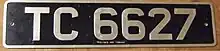 Vehicle registration plates in Trinidad and Tobago are categorised using prefixes based on the type of vehicle and feature up to four succeeding digits. Registration plates in Trinidad and Tobago are supposed to be either white figures on a black background or black figures on a white background. All motor vehicles that are operating in the roads of Trinidad and Tobago are required by law to have a registration plate affixed to the front and rear of the vehicle at all times except during very specific situations. This current system has been present for over 40 years.