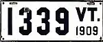 1909 | Black serial on white porcelain plate with border line; "VT. 1909" at right | none | 1234 | 1 to approximately 2000 | First dated plate. |